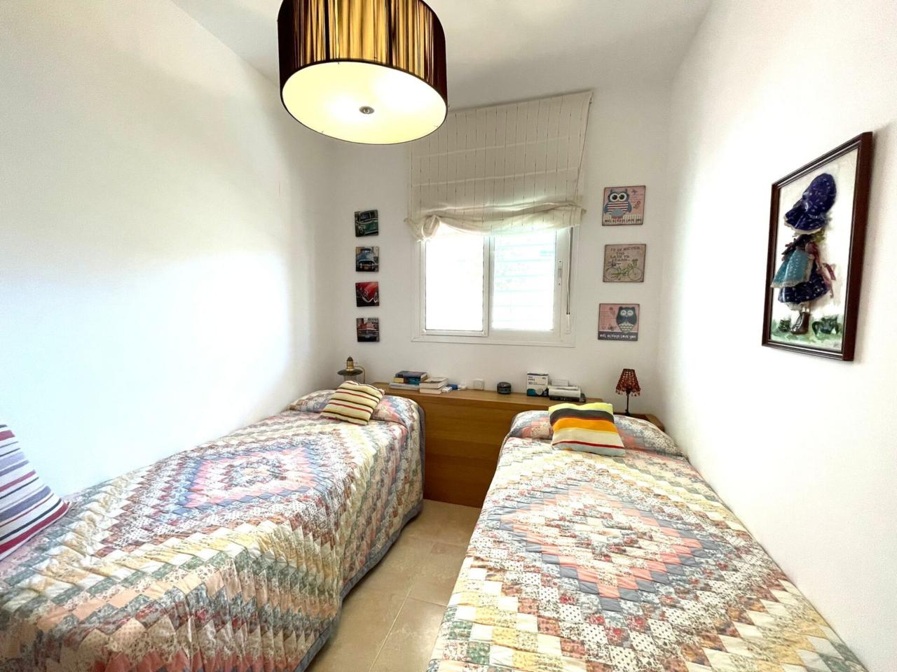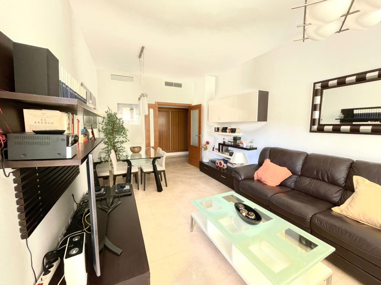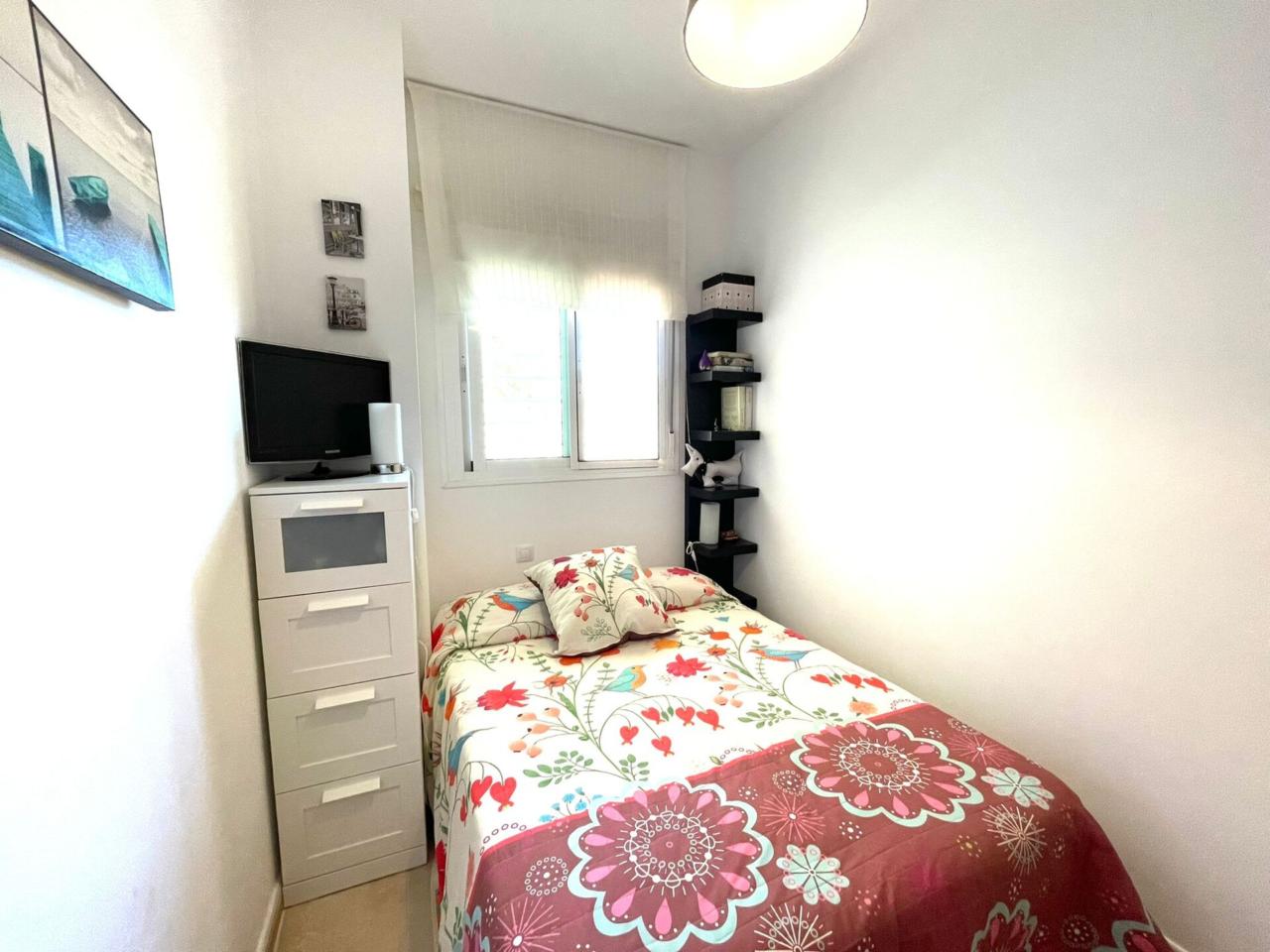 La vivienda cuenta con una superficie construida de aprox 90 m2 de los cuales se distribuyen en 3 habitaciones todas ellas con armarios empotrados y aire acondicionado y calefacción centralizado. La habitación principal dispone de baño en suite. Segundo baño completo en pasillo.