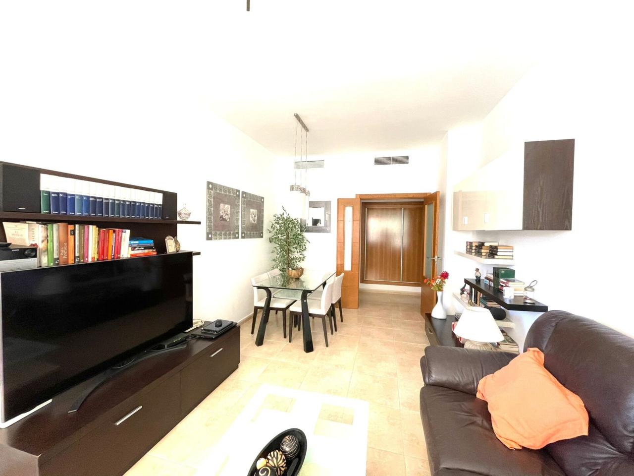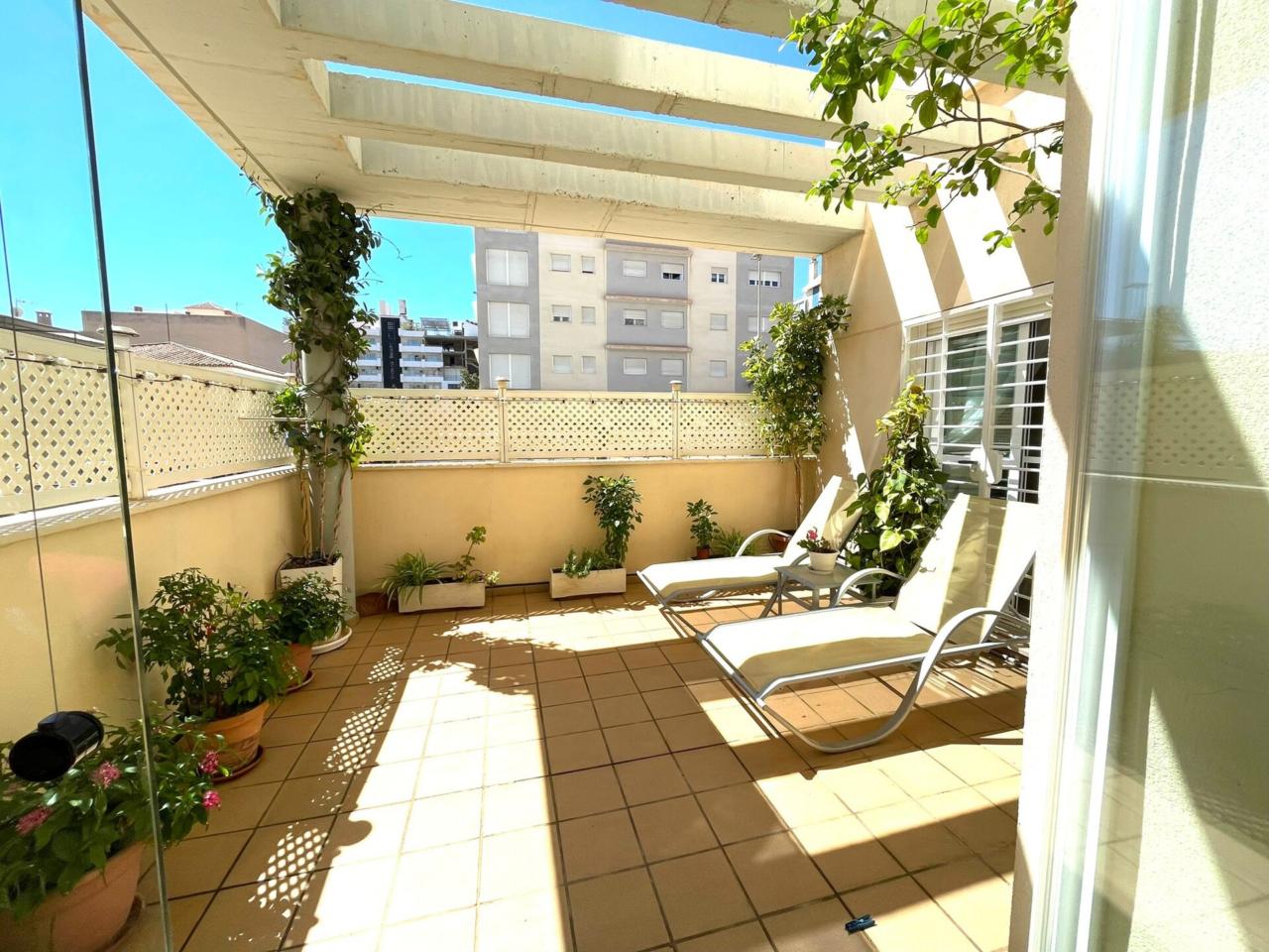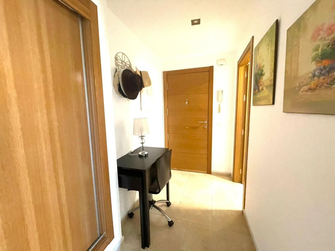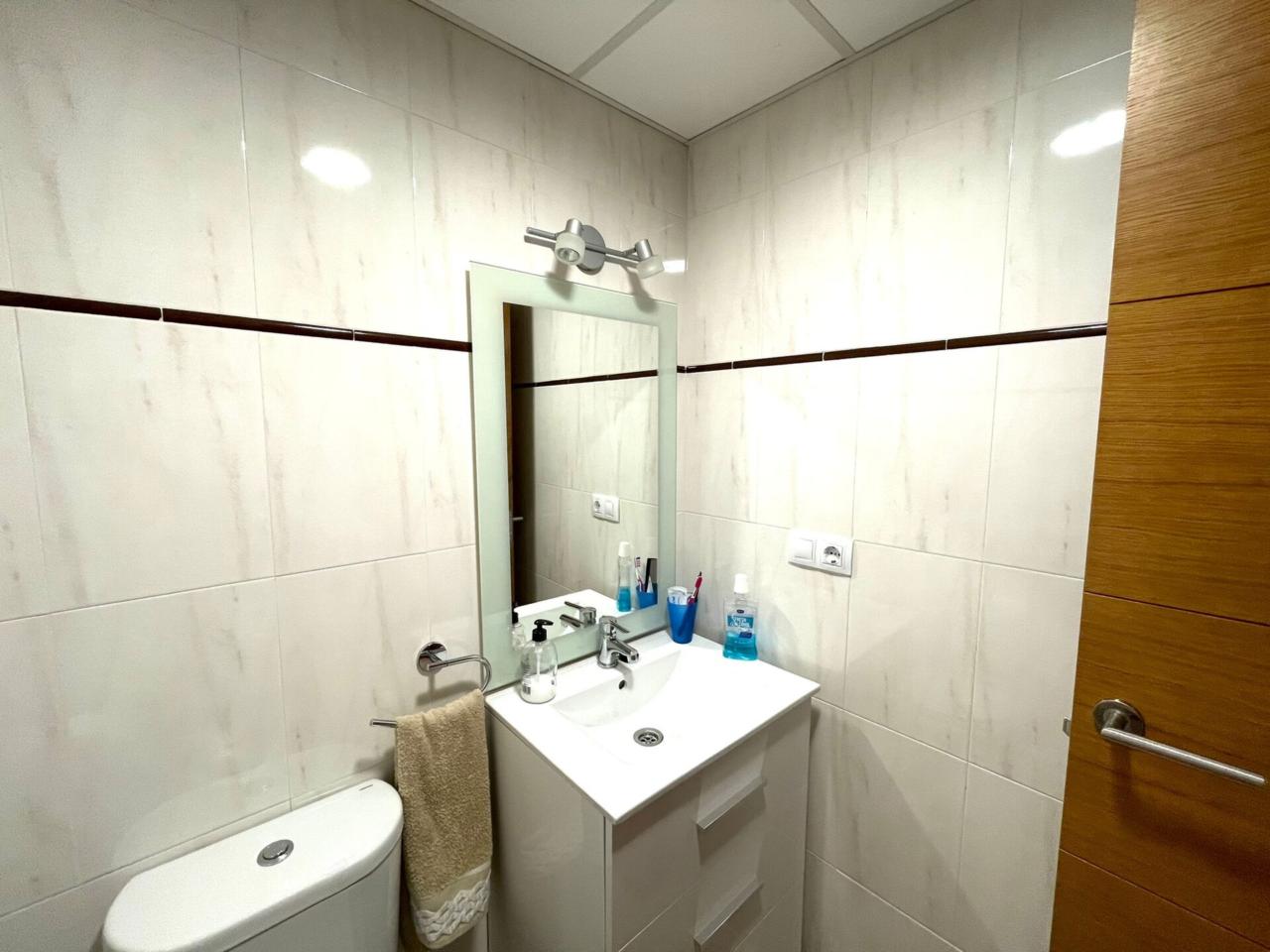 La vivienda cuenta con una superficie construida de aprox 90 m2 de los cuales se distribuyen en 3 habitaciones todas ellas con armarios empotrados y aire acondicionado y calefacción centralizado. La habitación principal dispone de baño en suite. Segundo baño completo en pasillo.