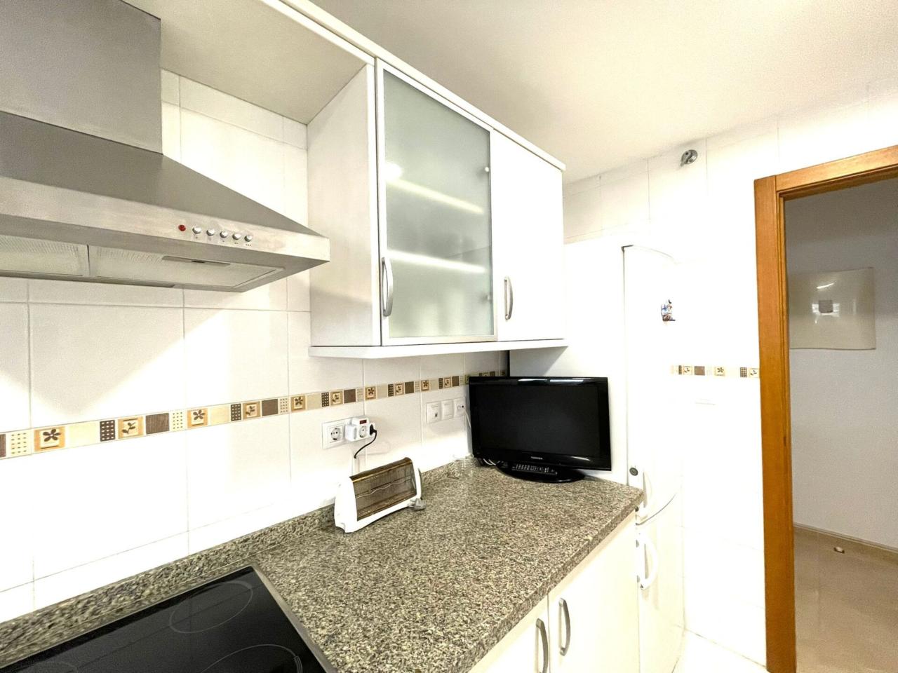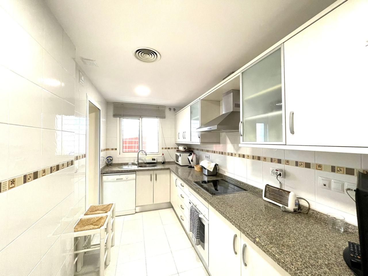 La cocina totalmente equipada y abierta al salón comedor con lavadero y acceso a terraza 6m2 aprox. La terraza acristalada de la vivienda da confort y relax .