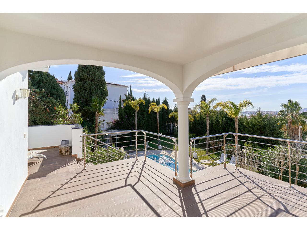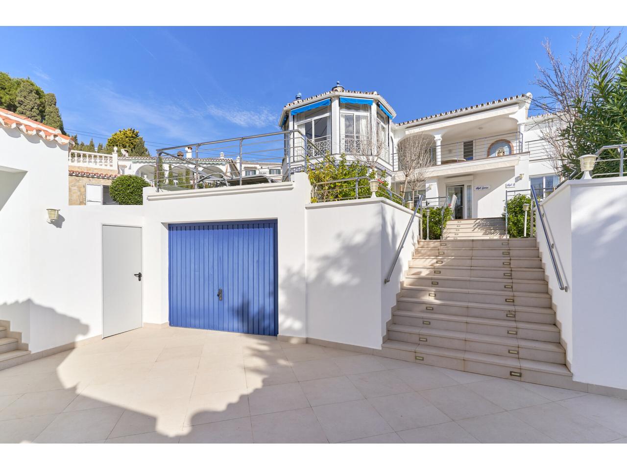 En el exterior, la propiedad se asienta sobre una amplia parcela con espectaculares vistas al mar, disfrutando de una gran piscina privada, varias terrazas soleadas y una acogedora terraza cubierta perfecta para relajarse o disfrutar de agradables cenas al aire libre. Además, cuenta con un amplio garaje privado con espacio para varios vehículos.