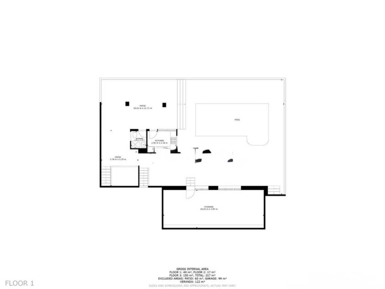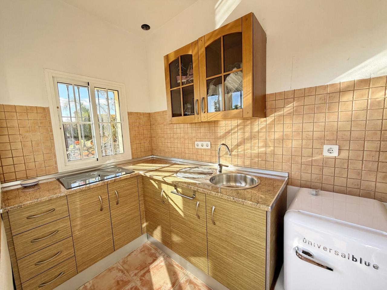 Cocina exterior y baño junto a la piscina, aportando máxima comodidad.